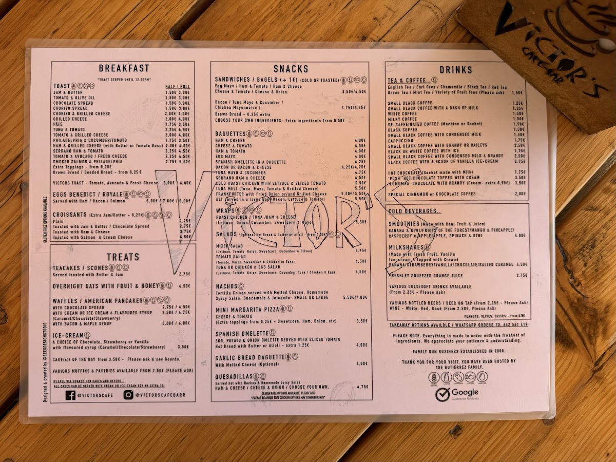 Introducing Victor’s, a delightful café nestled in the heart of Las Marinas, Almería. With its warm, welcoming atmosphere and family-run charm, this spot is a true gem for food lovers. The menu is a celebration of delicious dishes and exceptional coffee, making it a must-visit destination. Customers rave about the generous portions and tantalizing choices, from the classic Eggs Benedict that appeals to the younger crowd to innovative specials like the Cheese & Onion Hot Dog that showcases their creative flair. Here, each meal is crafted with care, ensuring that every bite fulfills the promise of quality and taste. The friendly staff adds to the experience, providing attentive service that brightens your day. Victor’s is more than just a café; it’s a gathering place where friends and families create memories over good food. Don’t miss out on experiencing the remarkable offerings this café has in store!